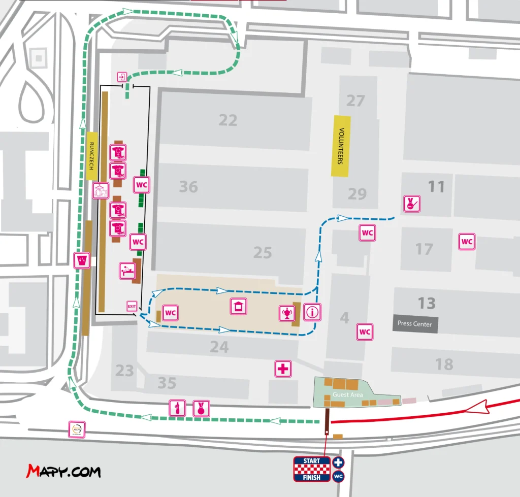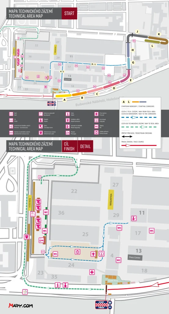 START/FINISH – Prague – Bubenské Nábřeží, Holešovice. For transportation to the start, ideally use public transport metro C and get off at Vltavská or if you will come from north (Letňany) get off at Nádraží Holešovice. You can find the exact transport connection on the pages of the Transport Company of the Capital City of Prague.